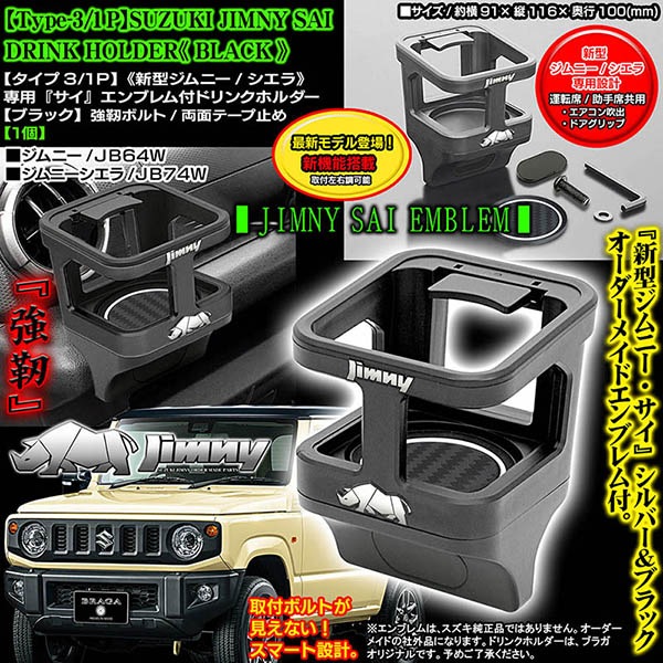 最新モデル/新機能搭載[新型ジムニー「サイ」エンブレム付]ジムニー/シエラJB64W/74W・ドリンクホルダー1個[タイプ3/ブラ...