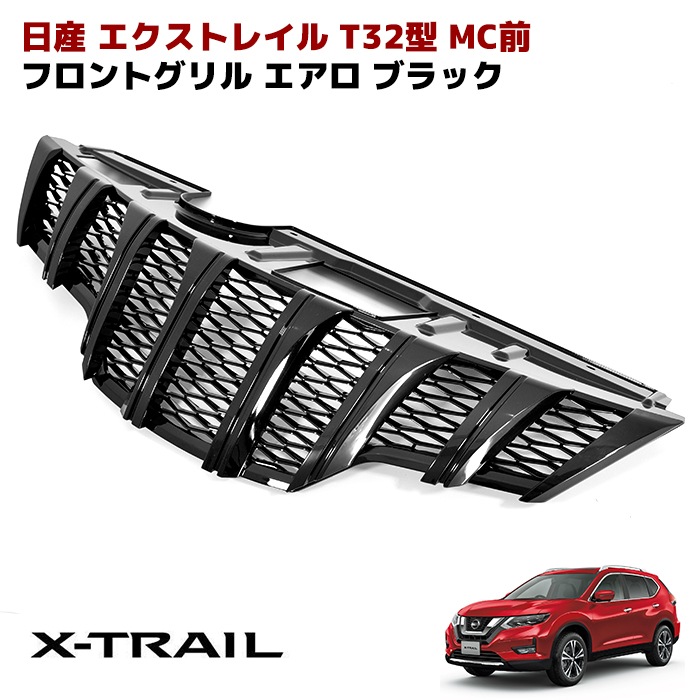 日産 エクストレイル T32 マークレス フロント グリル ブラック マーク台座無し