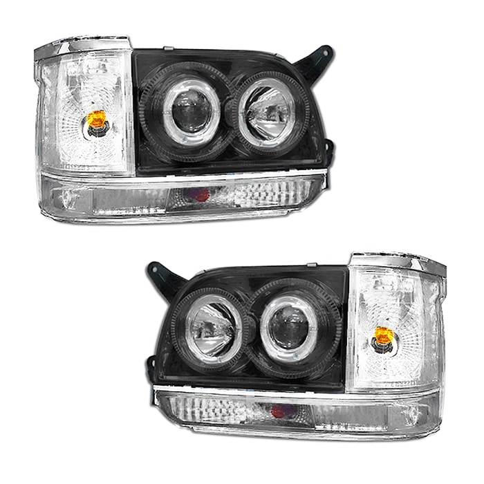 100系 ハイエース バン LEDリング付き インナーブラック ヘッド & オレンジ コーナー ウインカー セット