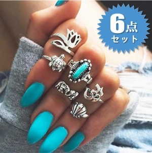 送料無料 買得く6点リングセット 指輪セット アンティーク調 リング 指輪 ペア オシャレ 欧米 海外 人気 レディース アクセサ...