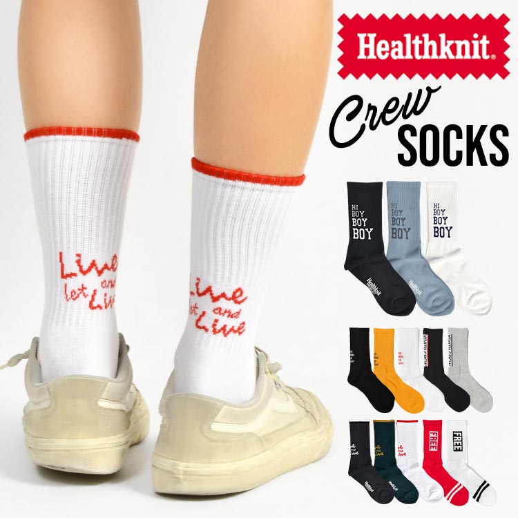 靴下 Healthknit ヘルスニット メンズ靴下 25-27cm 1足 1P ロゴライン ボックスロゴ レディース ラインソッ...