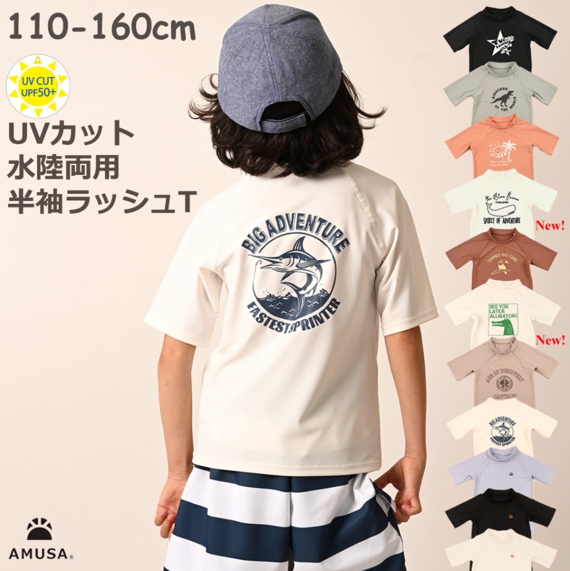 UVカット 水陸両用 半袖ラッシュガードTシャツ キッズ水着 男の子