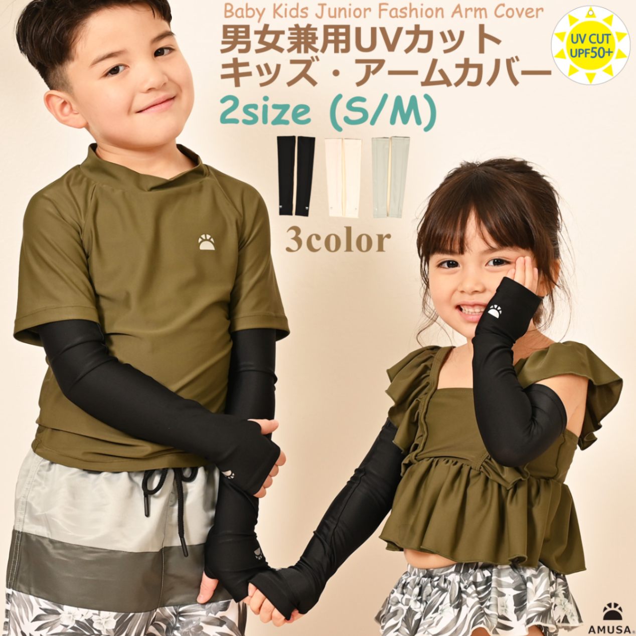UVカット・キッズ・アームカバー (S/M) ホワイト ブラック ミント キッズ水着 男の子 女の子 ラッシュガード