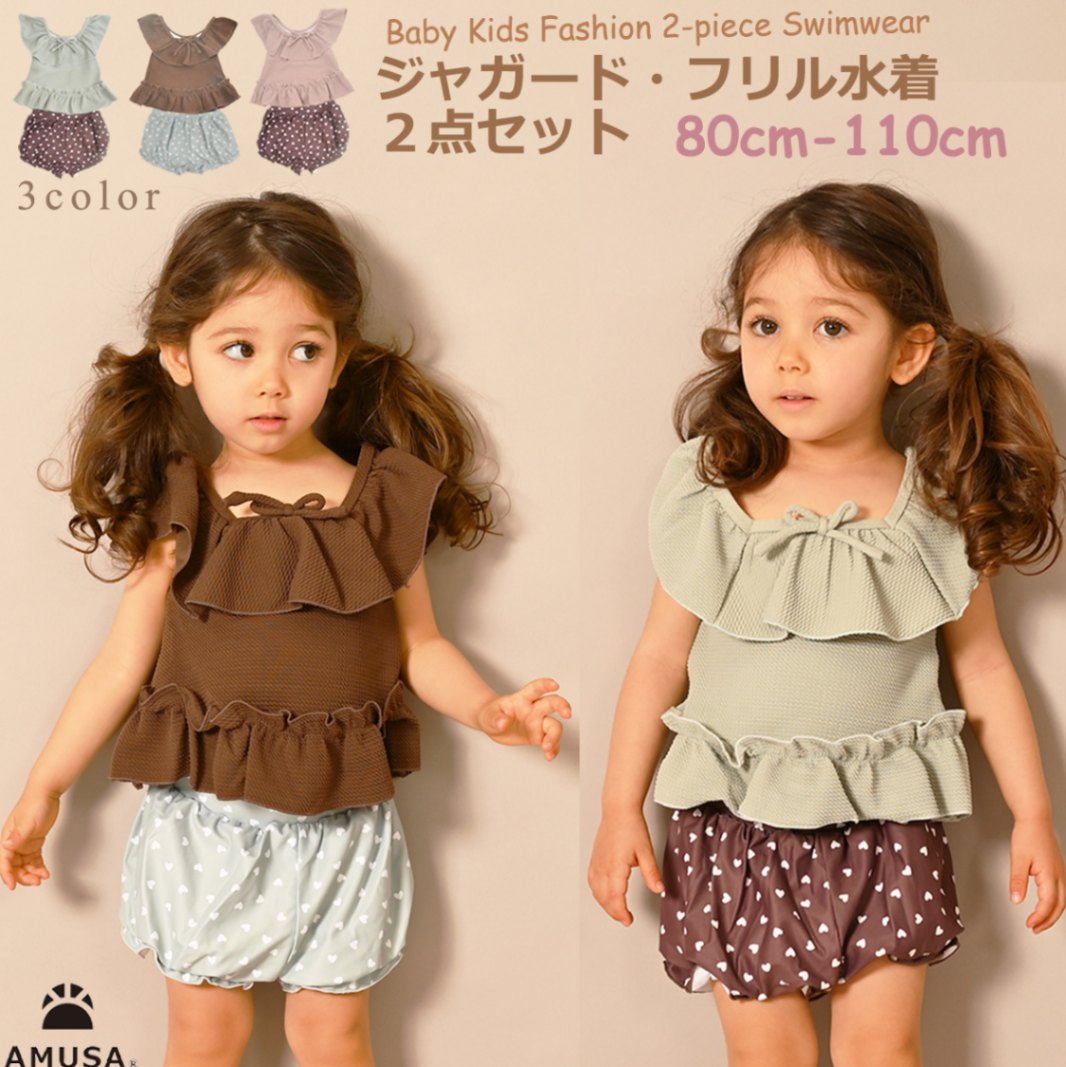 【宅配送料無料】ジャガードフリル水着ハート柄パフパンツ2点セット キッズ ベビー 赤ちゃん 子供 女の子 女子 UVカット キッ...