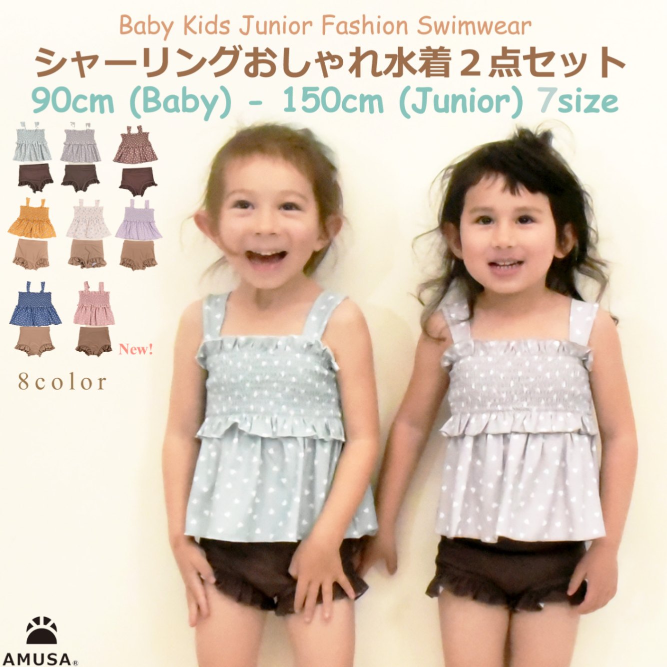 【宅配送料無料】ハート柄シャーリングフリル水着 セパレート キッズ ベビー 2点セット 赤ちゃん 子供 女の子 UVカット かわ...