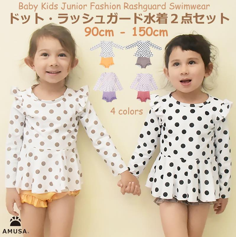 【宅配送料無料】ドット柄ラッシュガード水着 セパレート キッズ ベビー 2点セット 女子 赤ちゃん 子供 女の子 UVカット 水玉...