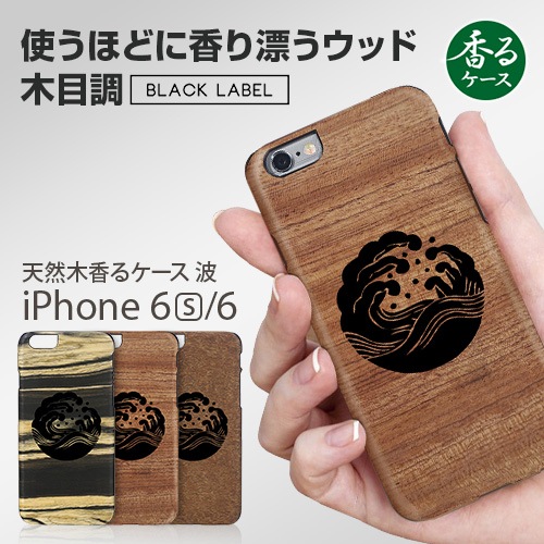 【訳あり アウトレット】 iPhone6s/6 天然木 香るケース「波」カバー Man&Wood BLACK LABEL(マンアン...