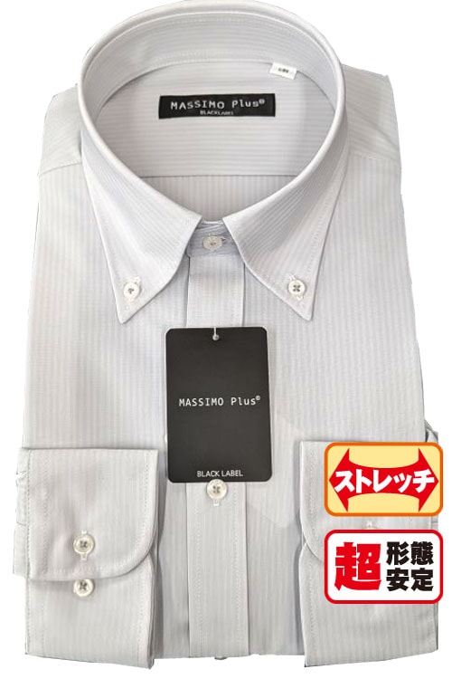 ワイシャツ メンズ 長袖 形態安定 ドレスシャツ ニットシャツ アイロン0 ストレッチ ベーシック ボタンダウン ドビーストライプ