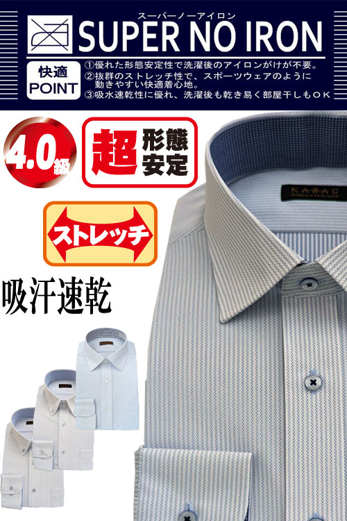 ワイシャツ メンズ 長袖 形態安定 スーパーノーアイロン ノーアイロン ベーシック セミワイドカラー ドビーストライプ ニット素材