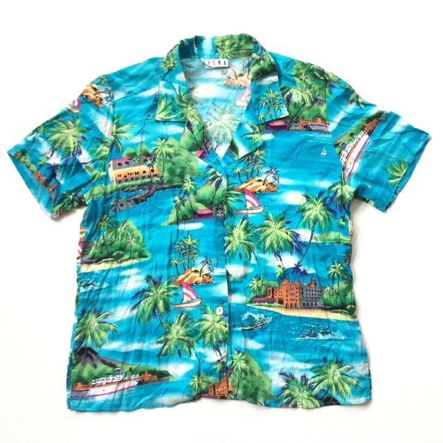 ERENA アメリカ古着 ハワイアン HAWAII 半袖ブラウス 送料無料 レディース L/多色 アロハシャツ レーヨンシャツ 貝...