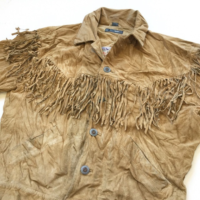Liz wear アメリカ古着 レザージャケット 送料無料 フリンジ レディース M/ベージュ系 スエード ウエスタン カウボーイ...