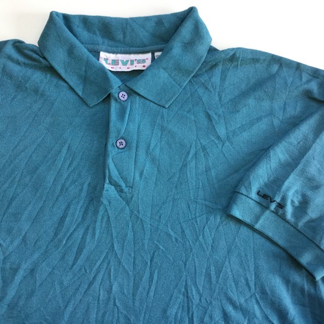 LEVI‘S リーバイス アメリカ古着 半袖ポロシャツ ビッグE 送料無料 メンズ L/青緑系 鹿の子 ワンポイント ロゴ USA...