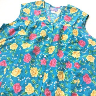 Moon Dance アメリカ直輸入 ノースリーブシャツ ベスト カットソー 送料無料 レディース 3X/水色・花柄 エプロン ス...