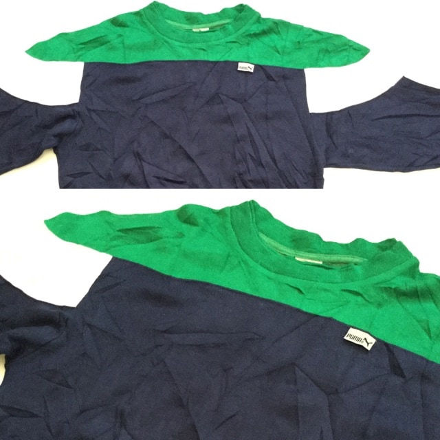 80年代 puma 切り返しスウェット トレーナー 送料無料 メンズ L/緑x白x紺 アメリカ直輸入 USA アメカジ スポーツ ...