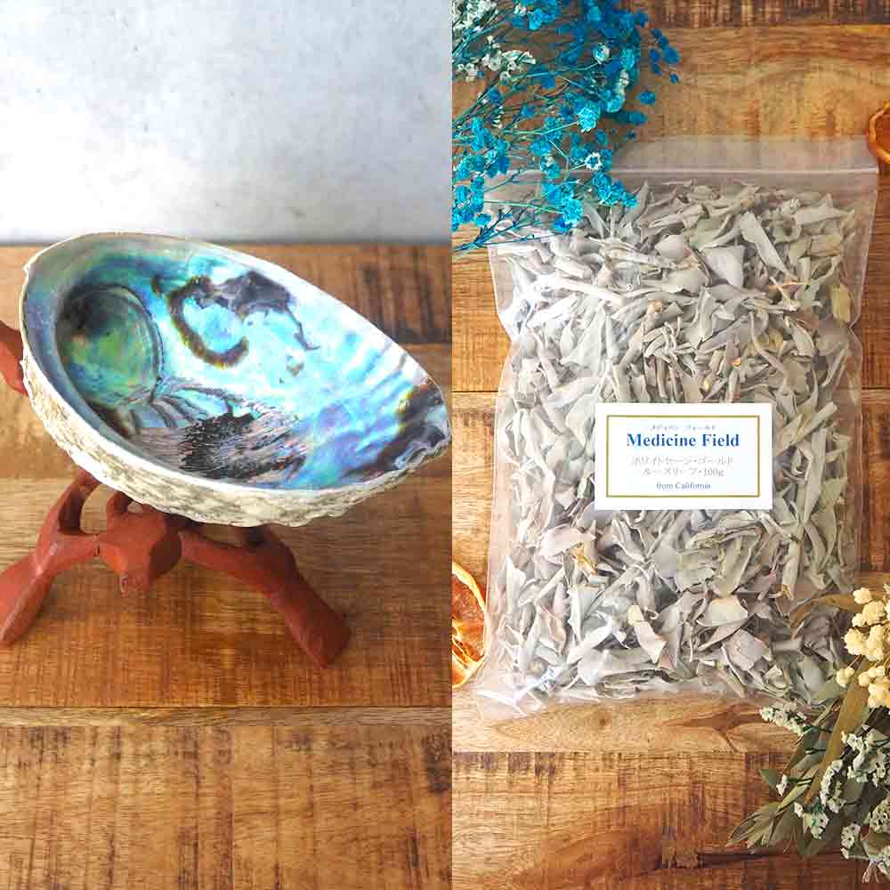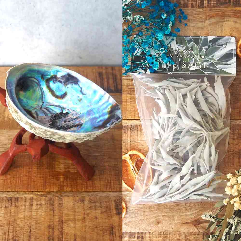 天然貝 アバロニシェル&スタンド&ホワイトセージプレミアム【香り系 】