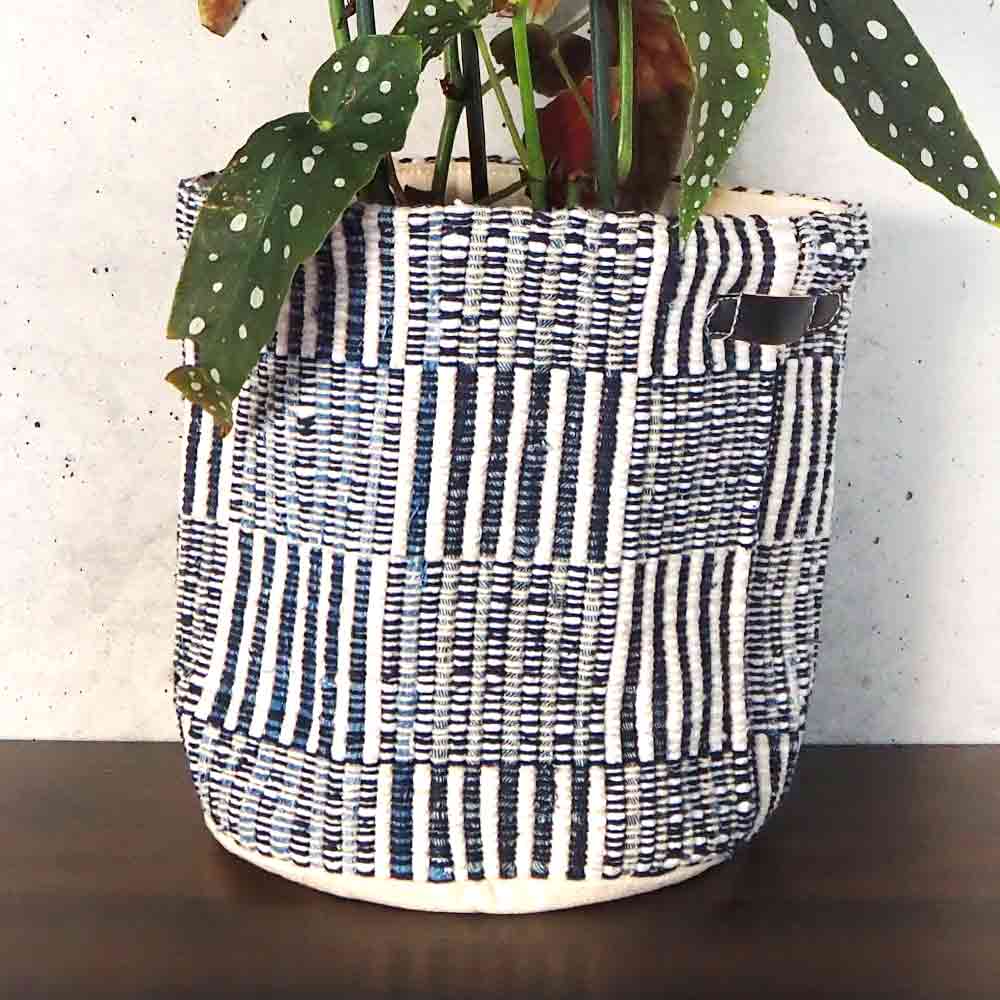 鉢カバー バスケットデニム デニムブロックチェック 【鉢カバー /1個売り】