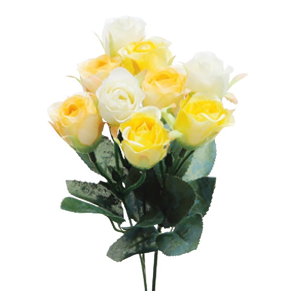 造花 シルクフラワー 『ローズブッシュ 9輪 イエロー FD5077-004』
