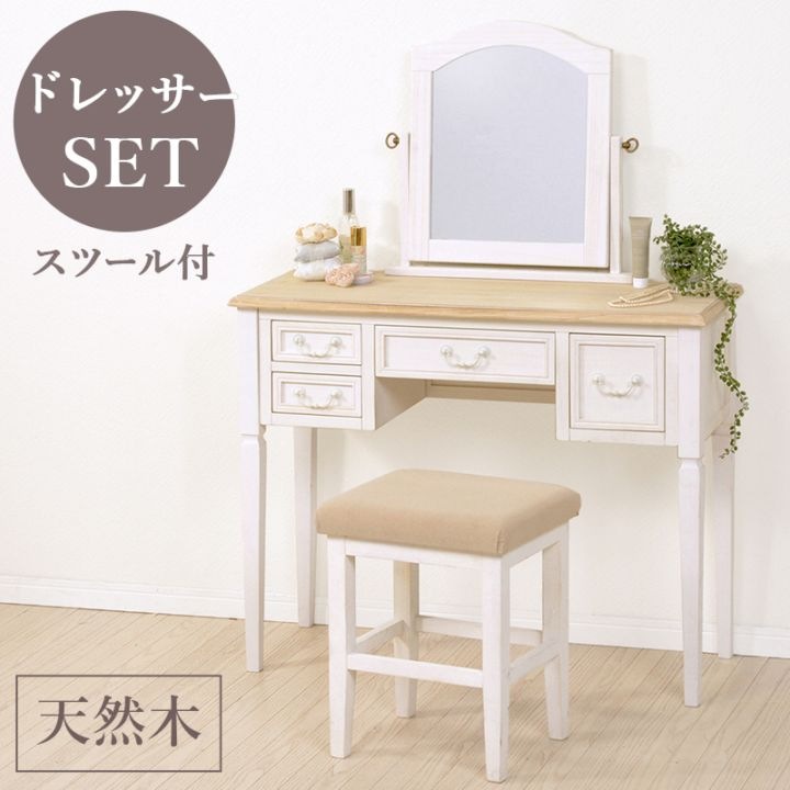 ドレッサー スツール 椅子付き 白 おしゃれ 姫系 アンティーク調 化粧台