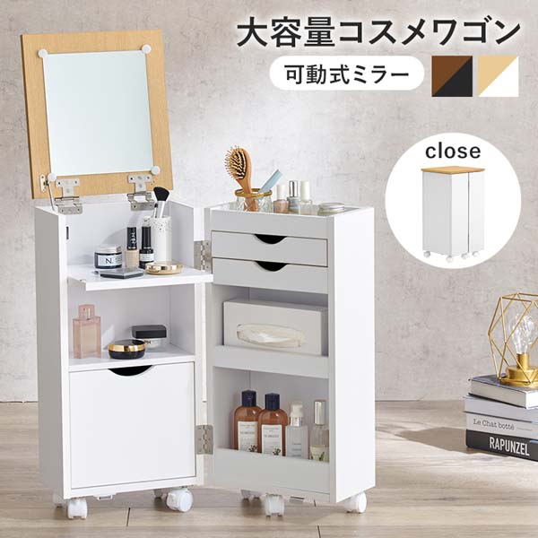 大容量コスメワゴン コスメボックス 鏡付き ドレッサー かわいい キャスター付