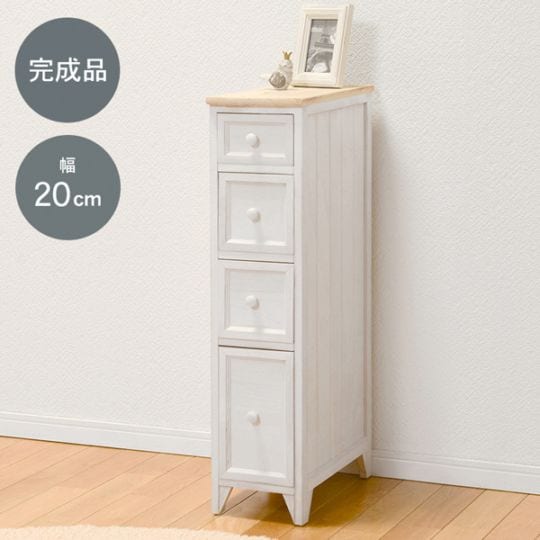 ローチェスト 4段 引き出し アンティーク 完成品 ホワイト