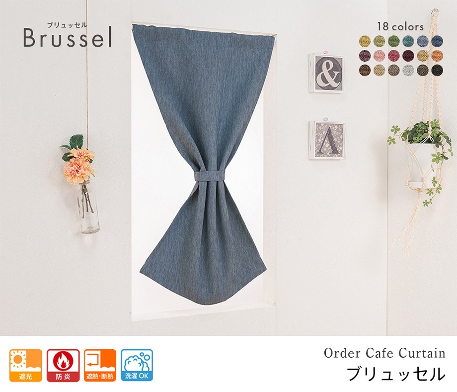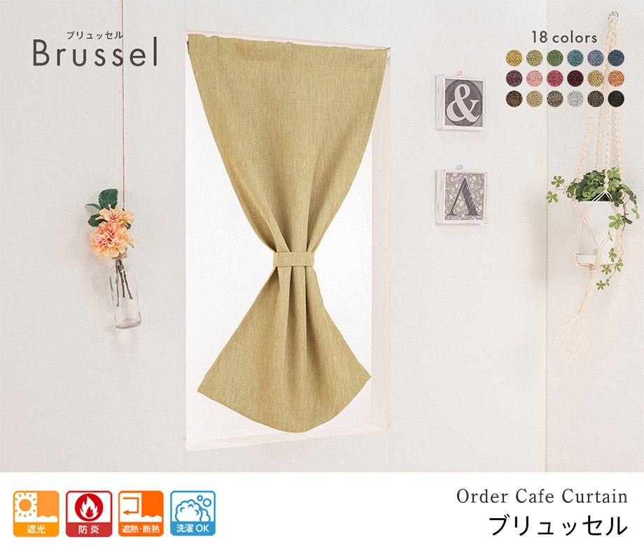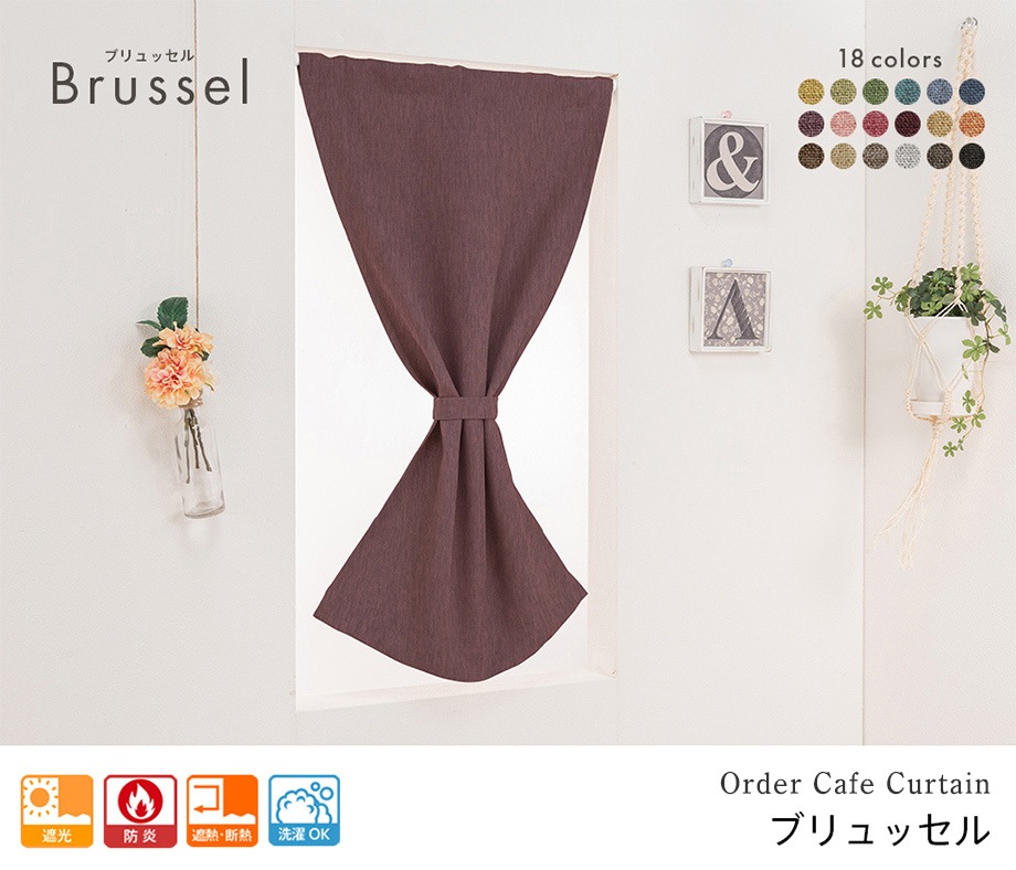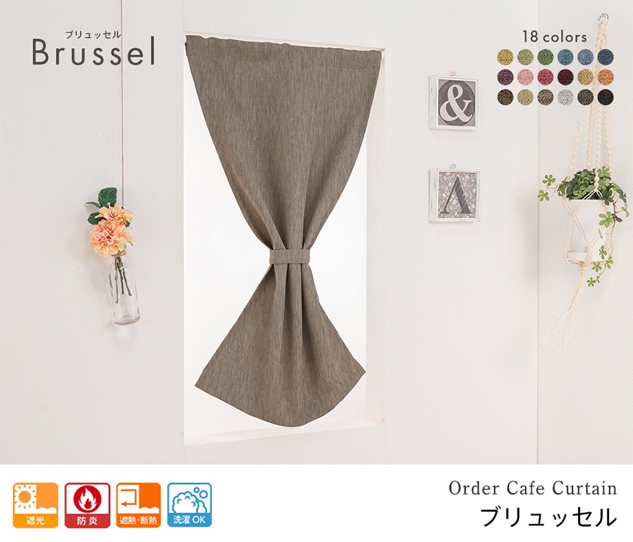 ナチュラルな質感と色合いを持つ杢調生地のオーダー防炎遮光カフェカーテン「ブリュッセル」ブラウン(1級遮光)