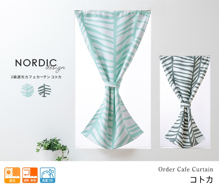 北欧らしいスタイリッシュなラインデザインの2級遮光カフェカーテン「コトカ」ブラック