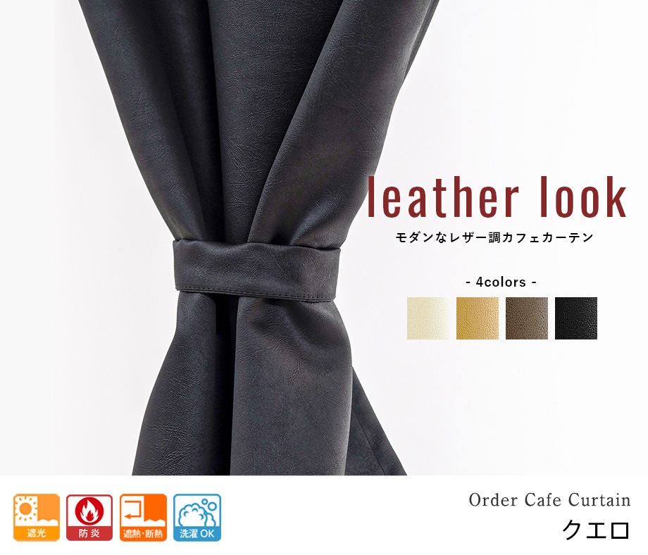 レザー調のエンボス加工を施したシックな防炎1級遮光カフェカーテン「クエロ」ブラック