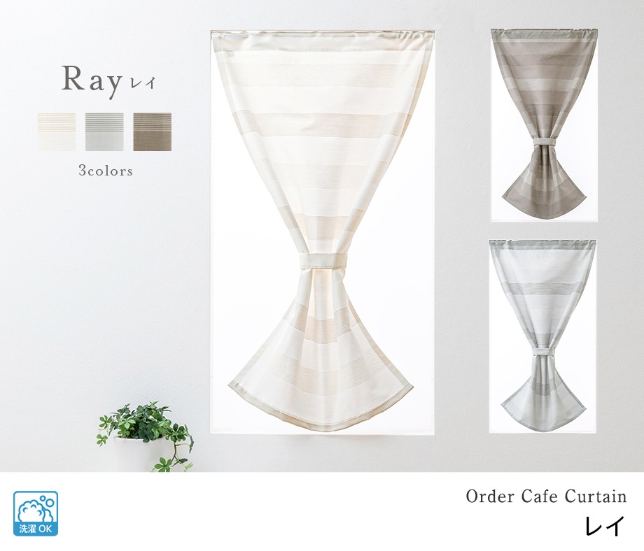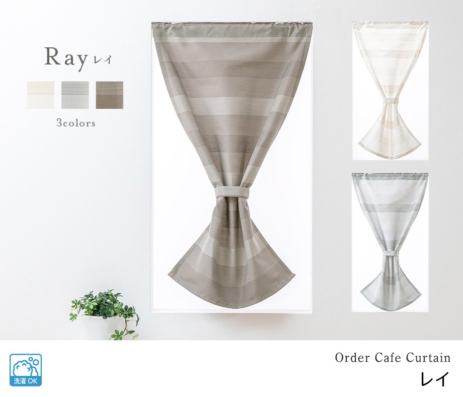 細いラインが並んだナチュラルモダンなカフェカーテン「レイ」アイボリー