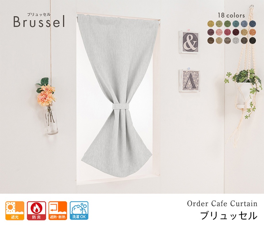 ナチュラルな質感と色合いを持つ杢調生地のオーダー防炎遮光カフェカーテン「ブリュッセル」グレー(1級遮光)
