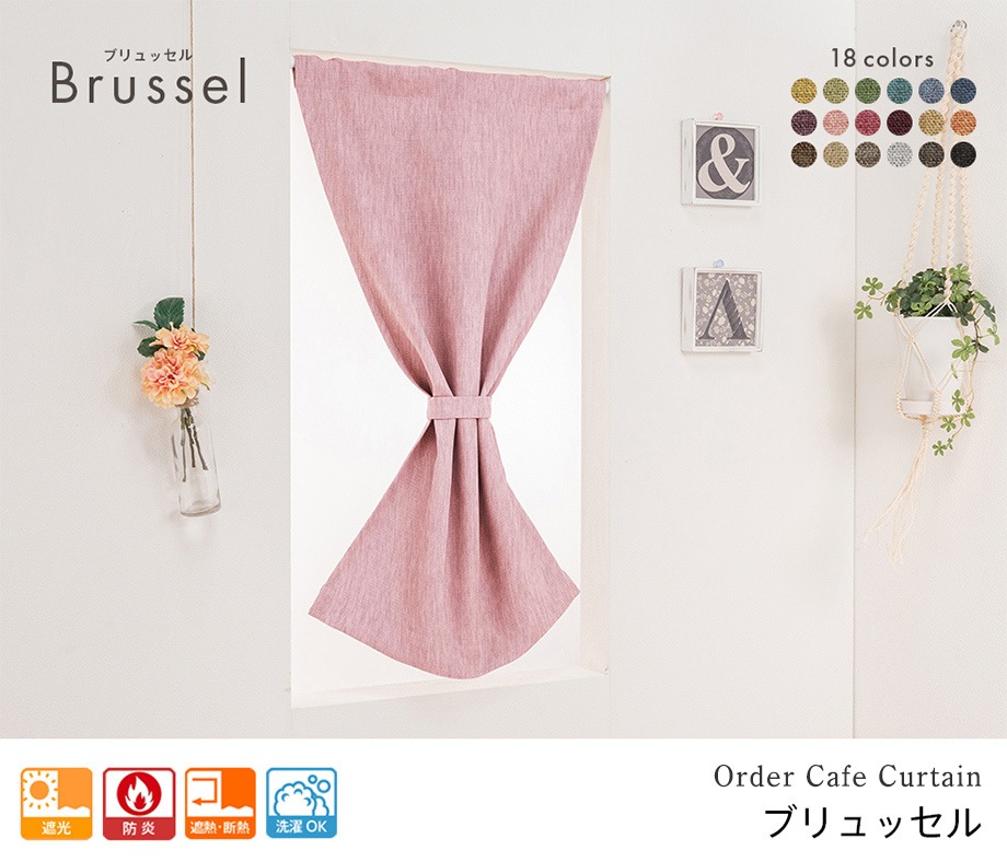 ナチュラルな質感と色合いを持つ杢調生地のオーダー防炎遮光カフェカーテン「ブリュッセル」ピンク(2級遮光)