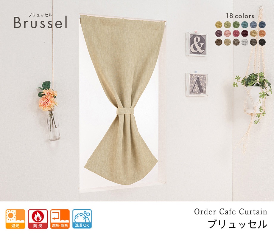 ナチュラルな質感と色合いを持つ杢調生地のオーダー防炎遮光カフェカーテン「ブリュッセル」ベージュ(2級遮光)