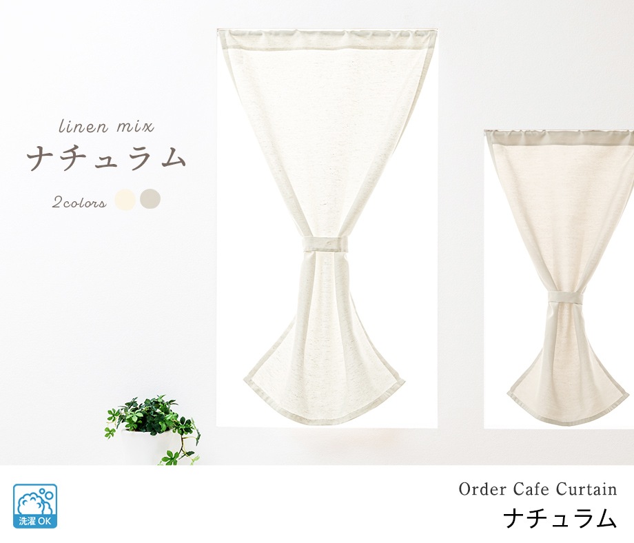 ざっくりとしつつ柔らかい自然な素材感の麻混カフェカーテン「ナチュラム」アイボリー