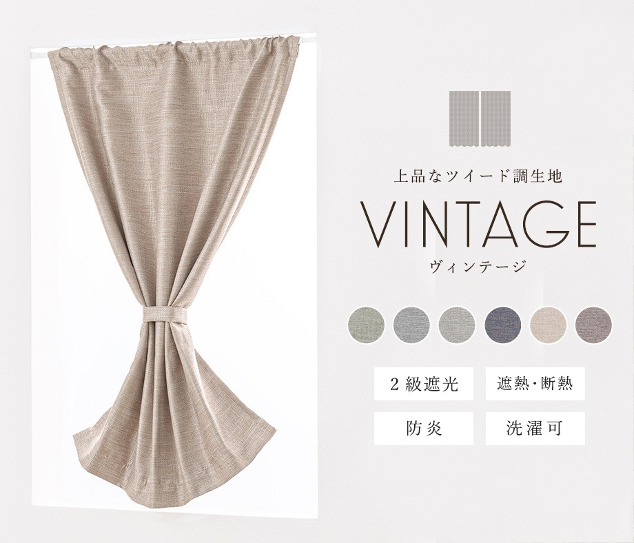 高級感のあるツイード調生地の洗える防炎カフェカーテン「ヴィンテージ」グレー