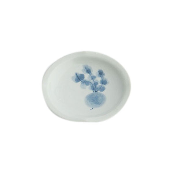 砥部焼・梅山窯・3寸丸小皿(三つ葉)