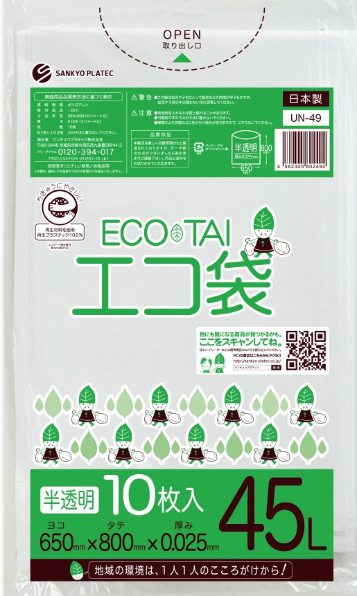 エコマーク付き ゴミ袋 45リットル 薄手 半透明 0.025mm厚(10枚×70冊)