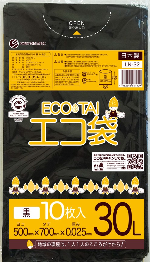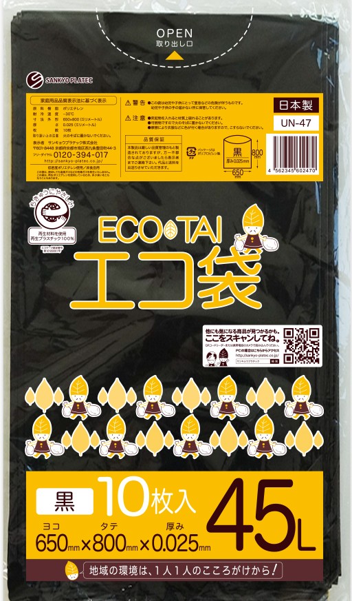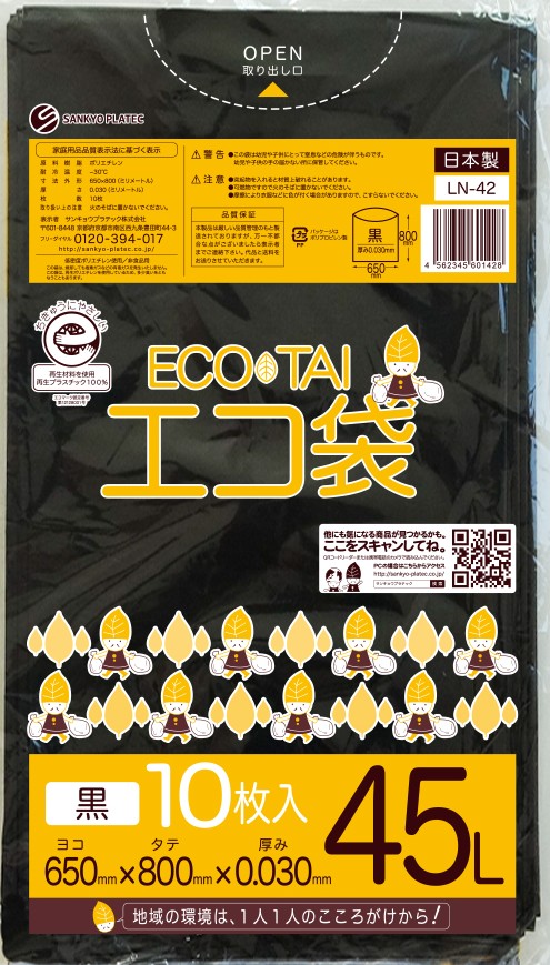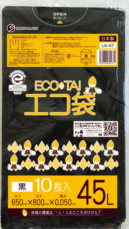 エコマーク付き ゴミ袋 45リットル 薄手 黒 0.025mm厚(10枚×70冊)