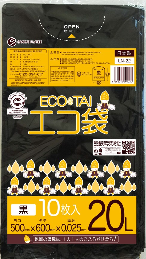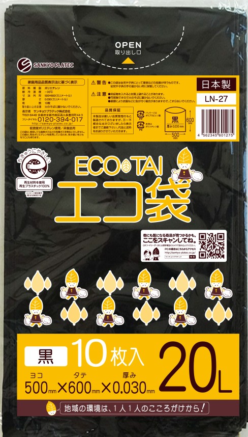 エコマーク付き ゴミ袋 20リットル 薄手 半透明 0.020mm厚(10枚×60冊)