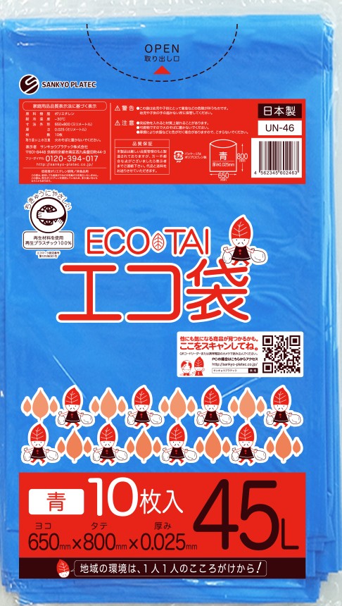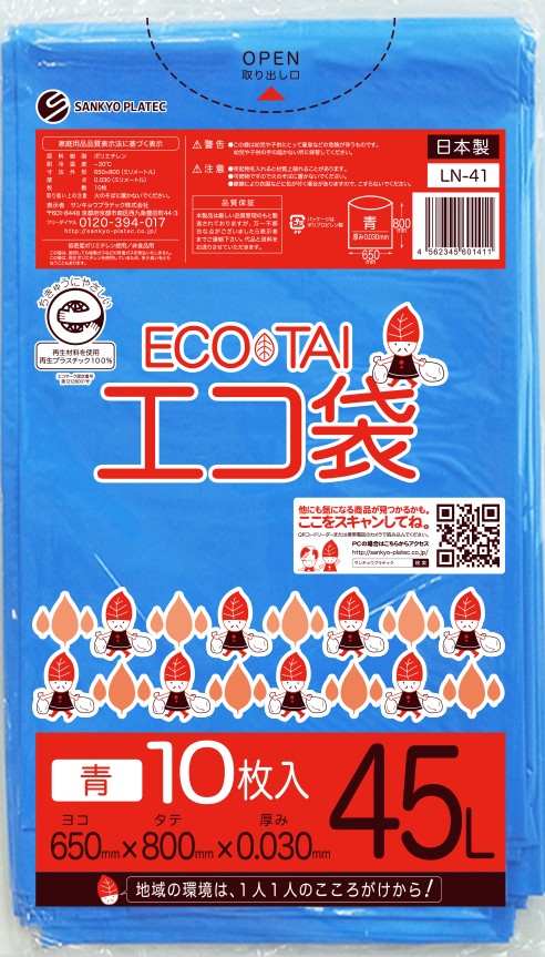 エコマーク付き ゴミ袋 45リットル 厚手 青 0.040mm厚(10枚×40冊)