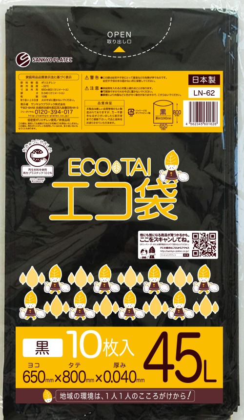 エコマーク付き ゴミ袋 45リットル 黒 0.040mm厚(10枚×40冊)