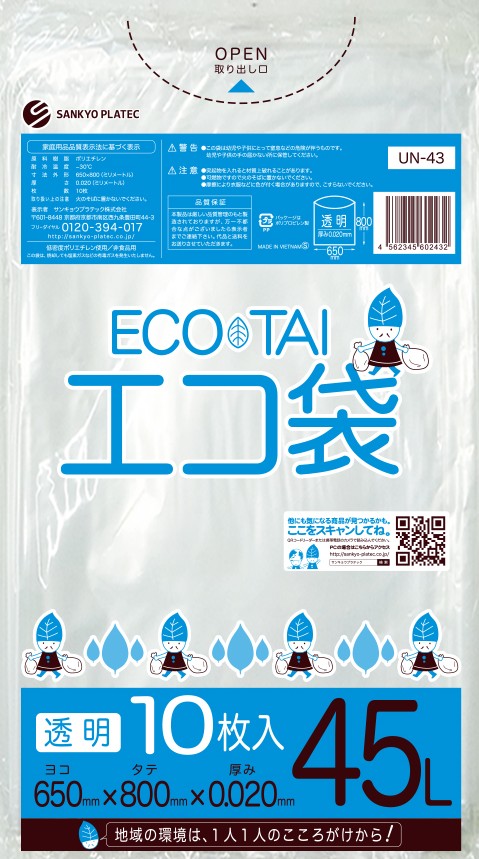 エコマーク付き ゴミ袋 45リットル 薄手 透明 0.020mm厚(10枚×80冊)