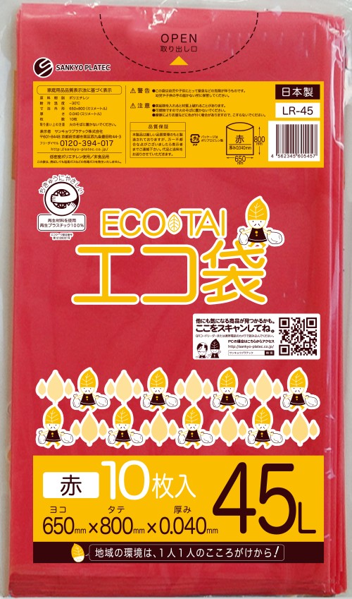 エコマーク付き ゴミ袋 45リットル 厚手 赤 0.040mm厚(10枚×40冊)