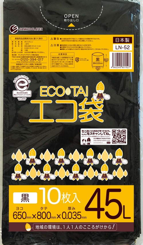 エコマーク付き ゴミ袋 45リットル 黒 0.035mm厚(10枚×50冊)