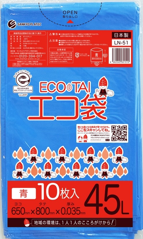 エコマーク付き ゴミ袋 45リットル 青 0.035mm厚(10枚×50冊)