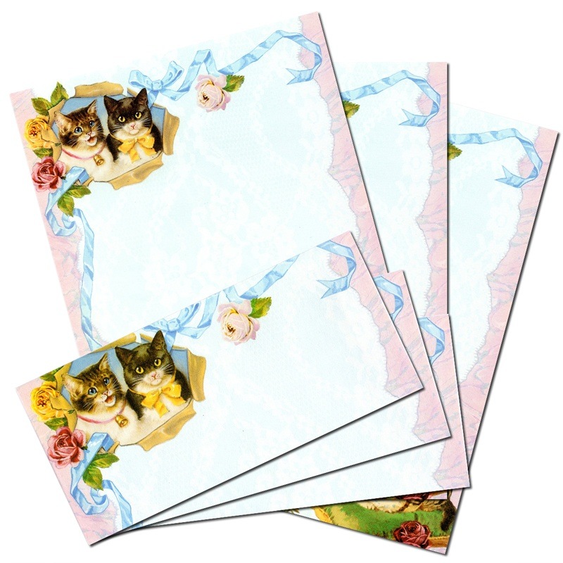 Paper Moon Graphics レターセット 便箋6枚・封筒3枚 (ネコ×リボン×バラ)