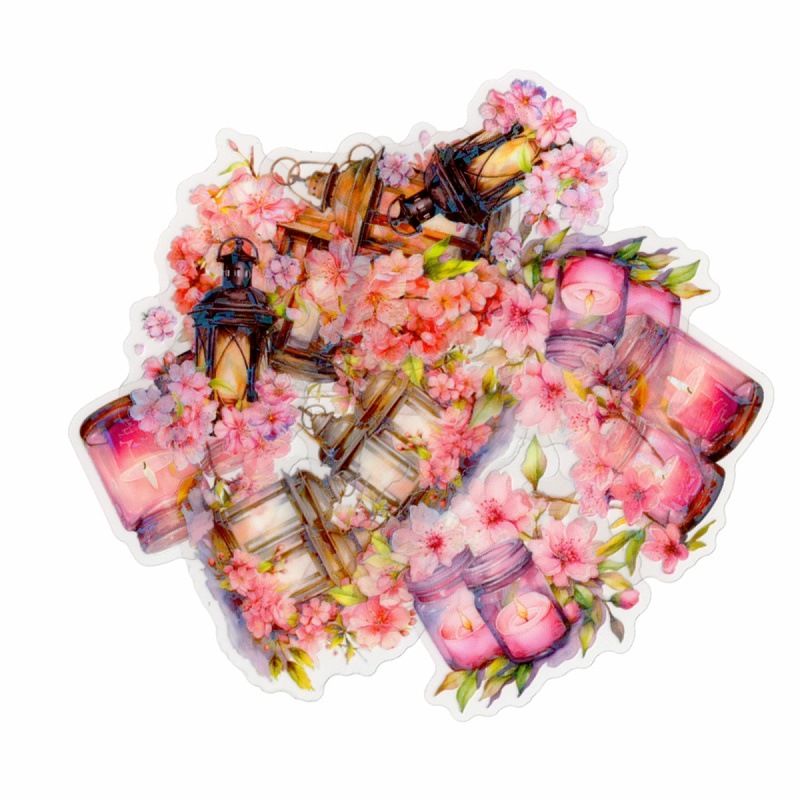 フレークシール セット スクラップ素材 桜シリーズ (ロウソク×ランタン) 箔押し加工 PET素材