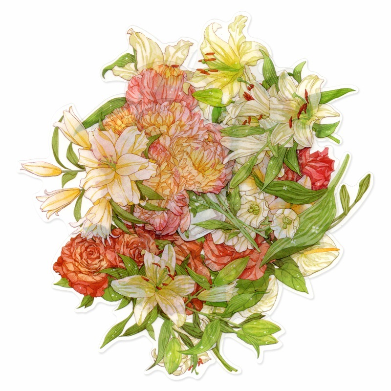 フレークシール セット スクラップ素材 花園シリーズ (牡丹) PET素材