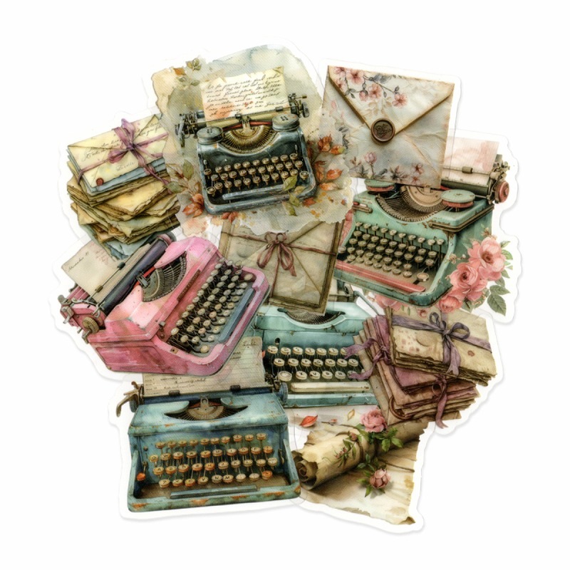 フレークシール セット スクラップ素材 本の香りシリーズ (タイプライター) PET素材