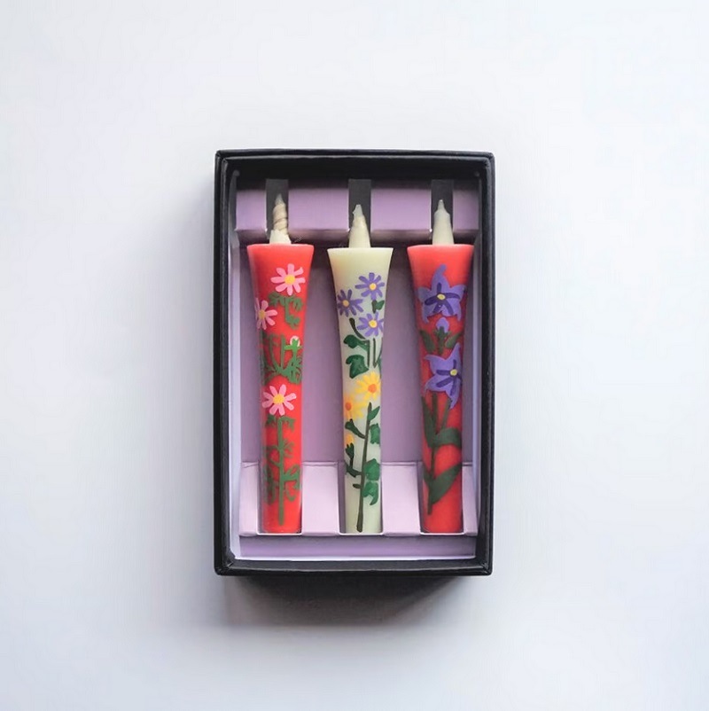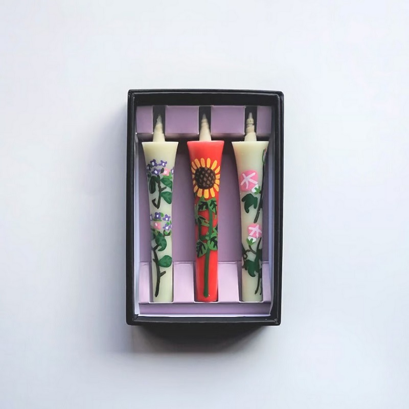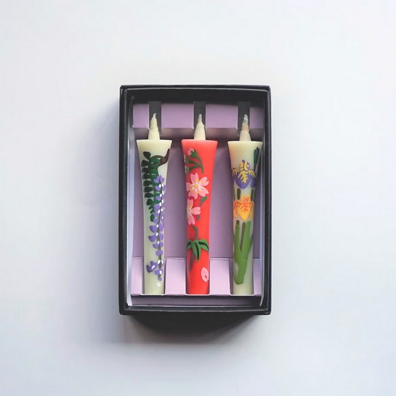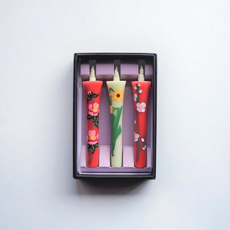 高澤商店(高澤ろうそく店):七尾和ろうそく「手描き絵ろうそく2号 春(3本入)」ろうそくのみ/ミニ燭台セット お選びいただけます