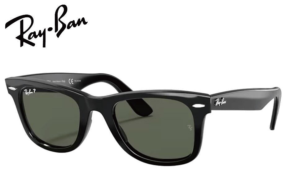 レイバン WAYFARER BLACK CRYSTAL/GREEN POLARIZED RB2140F 901/58 52mm G...