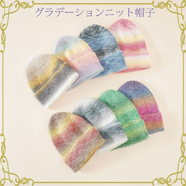【即納】レディース ファッション アイテム ニット帽 グラデーション ニットキャップ 防寒 保温 鮮やか カラフル 伸縮性 快適な...